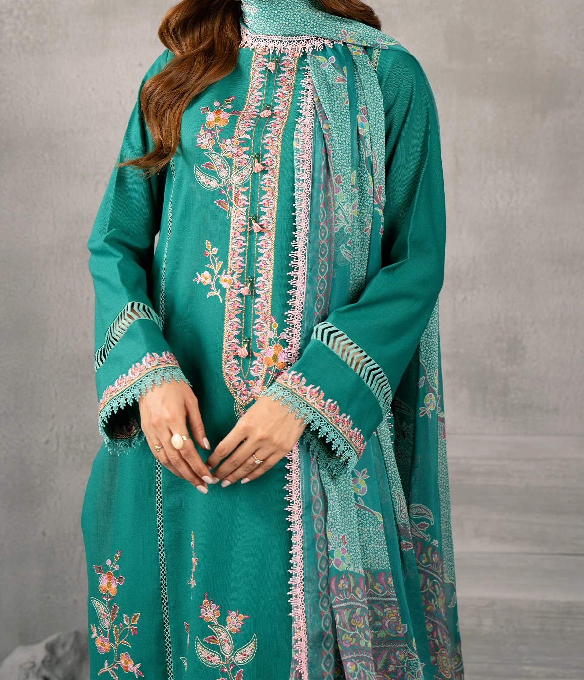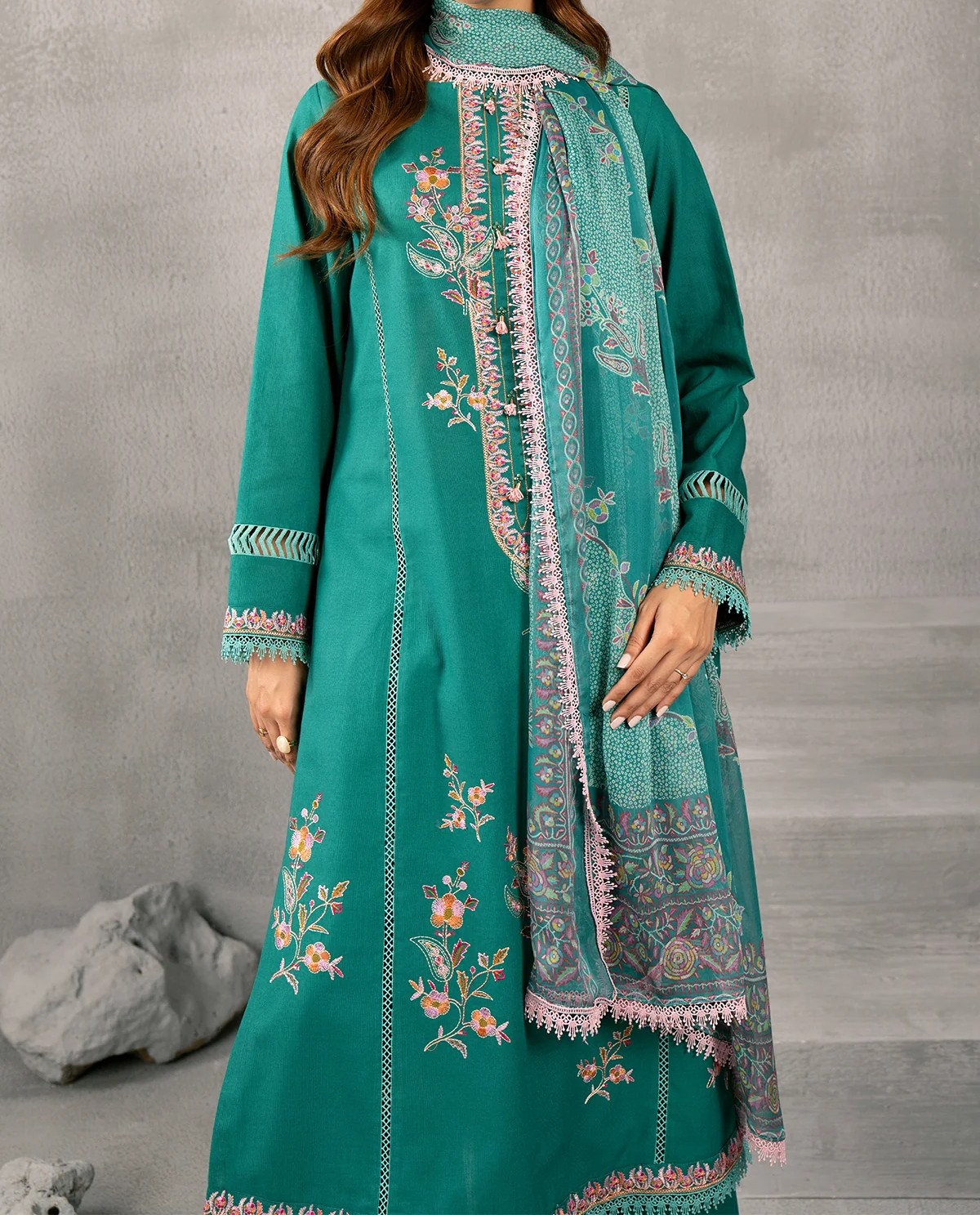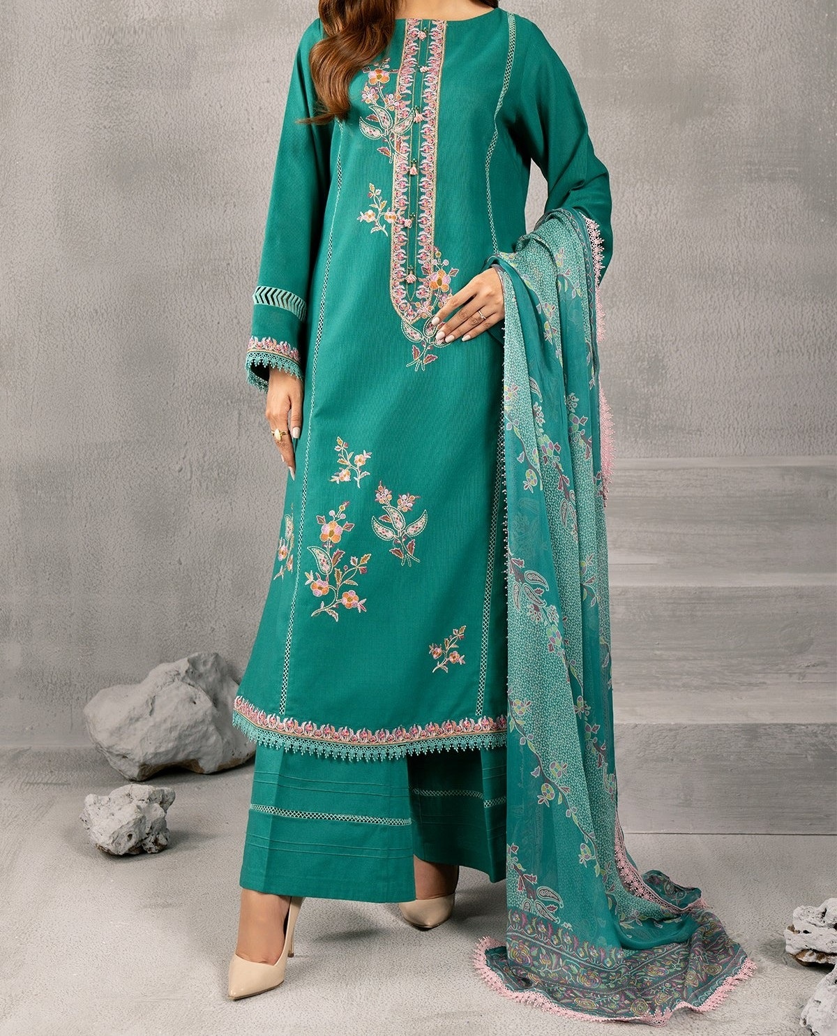 3 Piece – Embroidered Slub Khaddar Suit Unstitched (Kayseria Original)