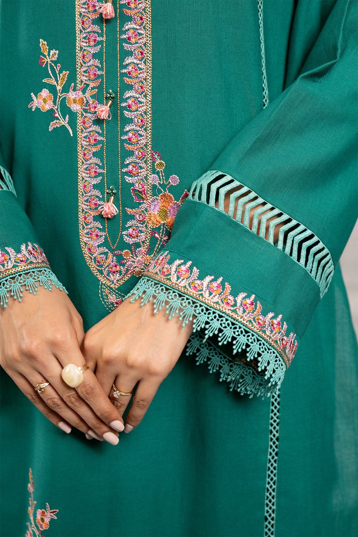 Dyed & Embroidered Slub Khaddar Lace 1.5M