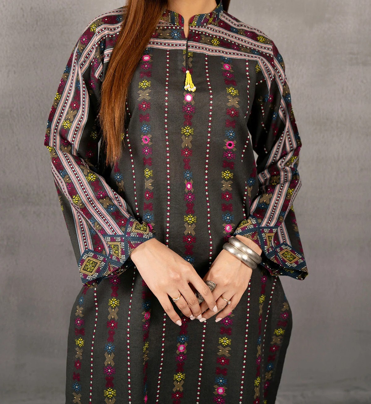 Be the first to review “Printed and Embellished Khaddar Shirt Unstitched (Kayseria Original)”